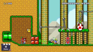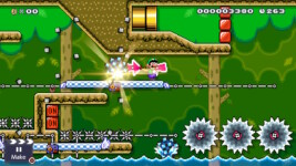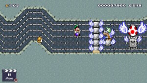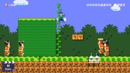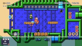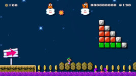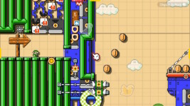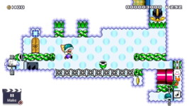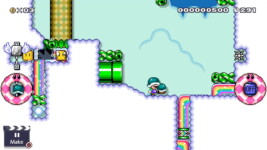 This level deliberately calls back to Star World 3 from Super Mario World, but with modifications to fit the requirements above plus the limitations of Super Mario Maker 2.