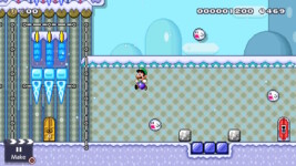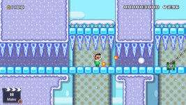 Hopefully I’ve balanced the challenge of dodging the falling ceiling, draining lava floor, and Bowser Jr. fireballs while you’re also clearing out ice blocks and hitting POWs so that you won’t become frustrated. When the player has that much to worry about, I think you necessarily have to minimize enemy count and use a simplified level structure, so that’s what I did.