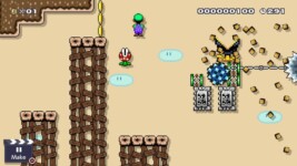 Still, I like the way you have to loop around through the level and retrace your steps. It doesn’t move in a straight line from left to right. I also love the bit at the end where you have to drop a Spike Ball so that it clears away the blocks obstructing the vertical path to the goal, but then you have to climb around and drop down from the top, which is the opposite direction the ball went! I haven’t seen that before, either.